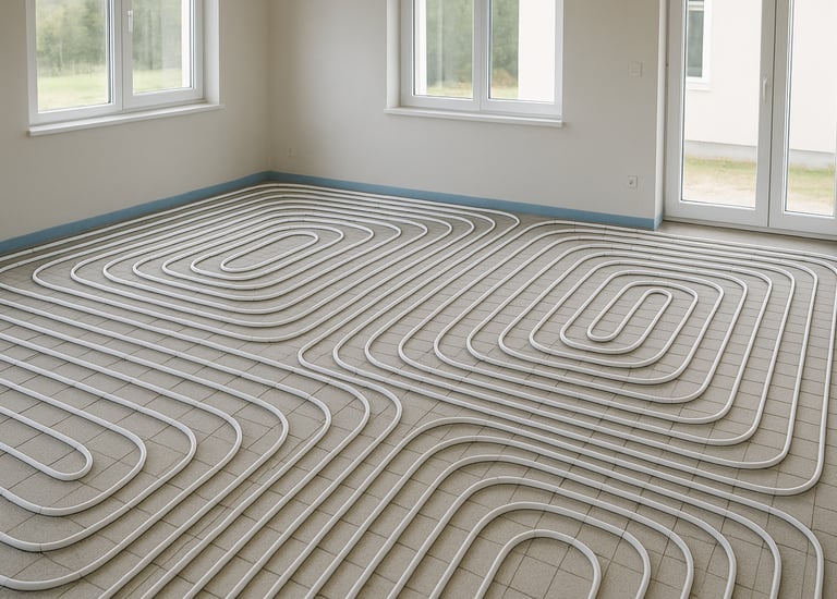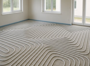 Układanie podłogówki oraz montaż rekuperatorów z przewiertami.